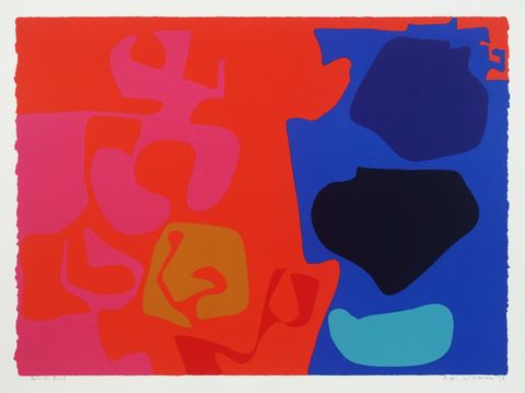 For a colourist of Heron's generation, the great challenge and exemplar was the Matisse of the papier decoupées, the abstracts cut and pasted out of sheets of gouache-soaked paper, like the wonderful L'Escargot that Heron saw many times during his visits as a trustee of the Tate. Heron himself made hundreds of small gouaches, deploying a range of colours brushed on with tiny Chinese watercolour brushes - even on the 15ft canvases - originally in adjacent colour areas pushing up to a fuzzy separating edge, though later the edge became a clean break (Heron called himself at this period a 'wobbly, hard-edge painter').